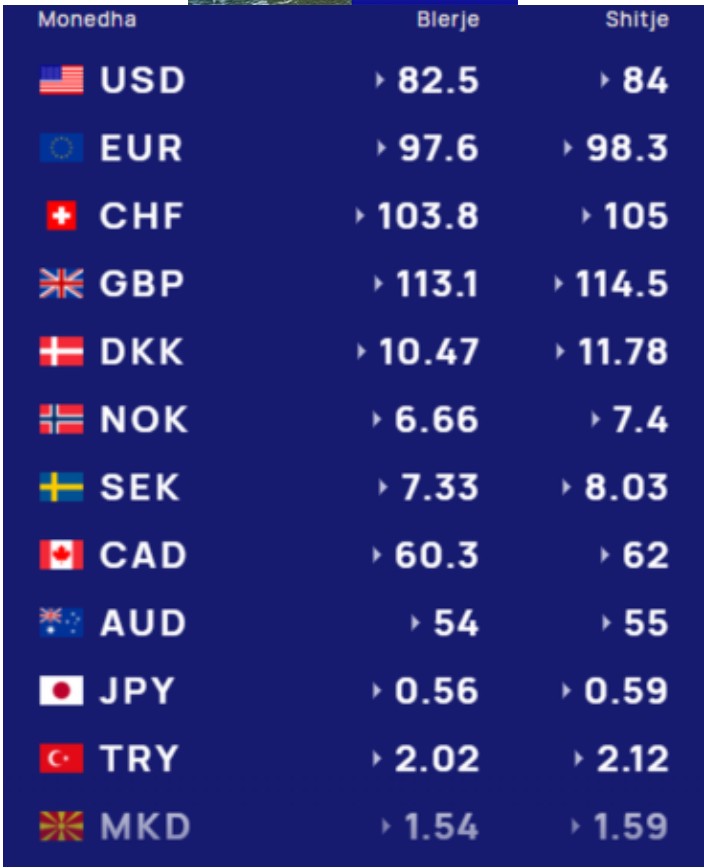 Euro do të blihet me 97.6 lekë dhe do të shitet me 98.3 lekë.
