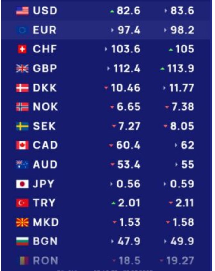Euro do të blihet me 97.4 lekë dhe do të shitet me 98.2 lekë.