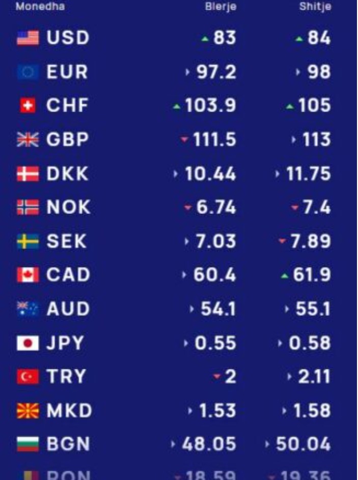 Franga zvicerane do të blihet me 103.9 lekë dhe do të shitet me 105 lekë.