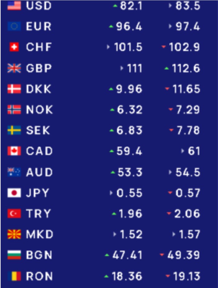 Euro do të blihet me 96.4 lekë dhe do të shitet me 97.4 lekë.