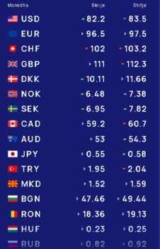 Ndërsa paundi britanik do të blihet me 111 lekë dhe do të shitet me 112.3 lekë.