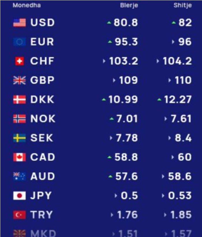 Ndërsa paundi britanik do blihet me 109 lekë dhe do shitet me 110 lekë.