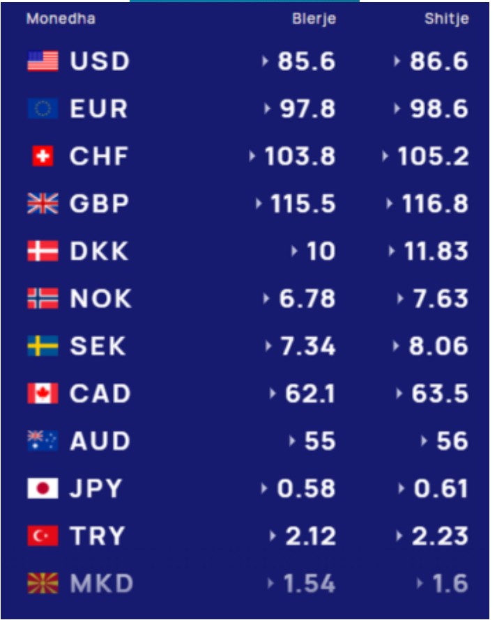 Franga zvicerane do të blihet me 103.8 lekë dhe do të shitet me 105.2 lekë