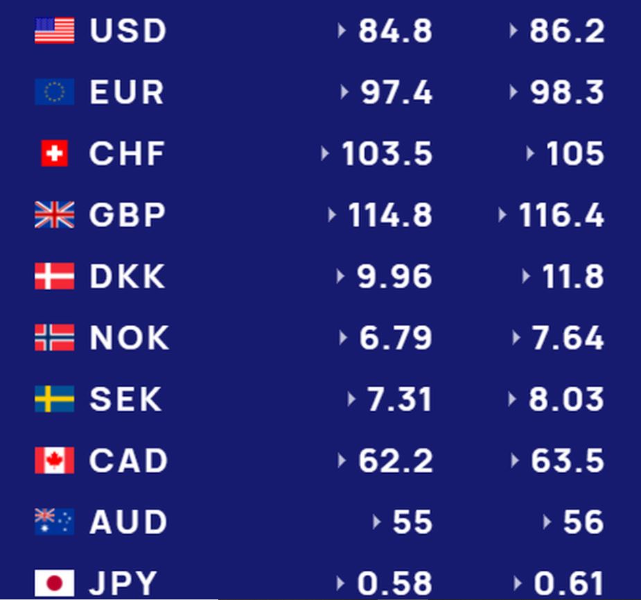 Euro do të blihet me 97.4 lekë dhe do të shitet me 98.3 lekë.