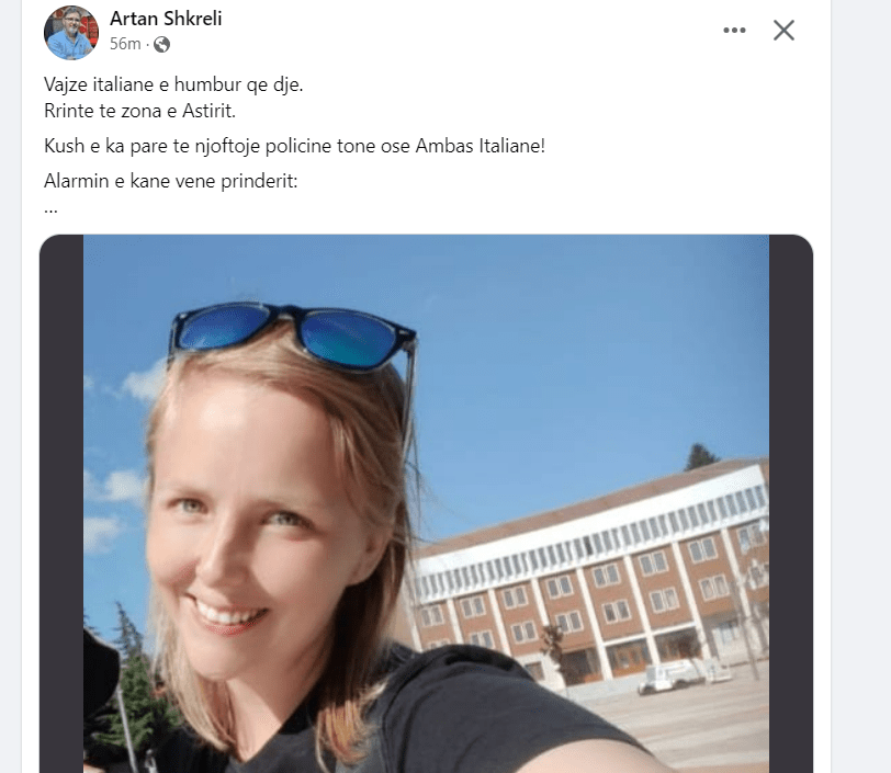 Vajza italiane, e humbur, rrinte te zona e Astirit, shkruan Artan Shkreli. Kush e shikon të njoftojë policinë.
