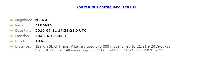 Një tërmet i fuqishëm raportohet se ka rënë pak më parë në Korçë.