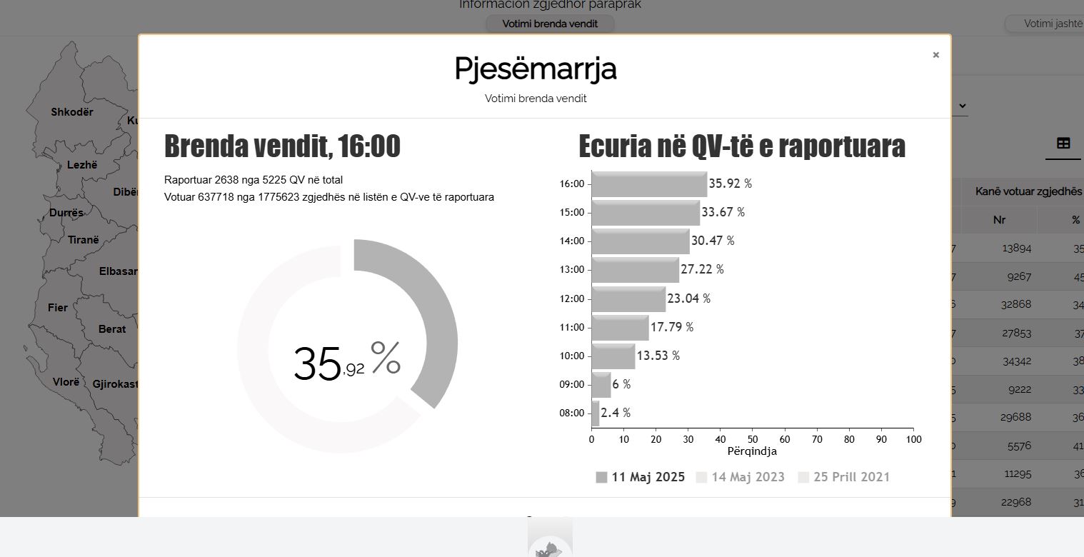 KQZ ka përditësuar të dhënat sa i përket pjesëmarrjes së qytetarëve në zgjedhje. Sipas të dhënave të Komisionit Qendror të Zgjedhjeve, deri në orën 16:00, kanë marrë pjesë në votim 35.92 përqind e zgjedhësve.
