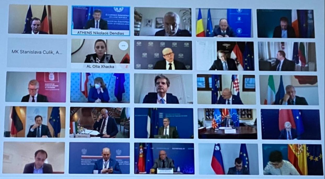 Kryediplomatët e BE mbështetën apelin e ministres Xhaçka për nevojën e një qasje strategjike të Bashkimit Evropian ndaj integrimit të Ballkanit Perëndimor, duke ritheksuar edhe njëherë se vendi i Shqipërisë dhe Maqedonisë së Veriut është në Bashkimin Europian, falë punës së mirë të bërë për përmbushjen e objektivave për anëtarësim.