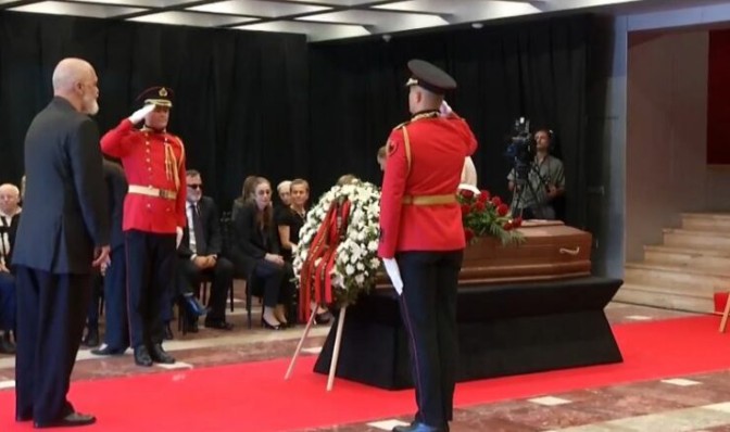 Kryeministri Edi Rama mori pjesë në homazhet e organizuara në Teatrin Kombëtar të Operas dhe Baletit për t’i dhënë lamtumirën e fundit Dhimitër Anagnostit.