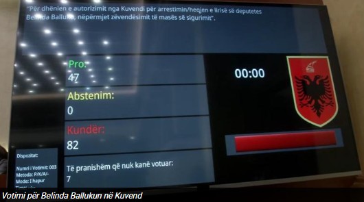 Me 82 vota kundër dhe 47 pro, Kuvendi ka rrëzuar kërkesën e SPAK-ut për heqjen e imunutetit të deputetes Belinda Balluku.