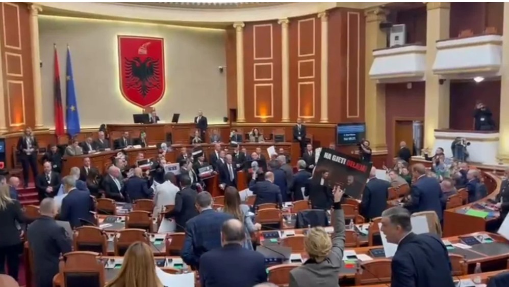 Pas votimit, në sallë kanë nisur tensionet. Deputetë të opozitës, kanë nisur të godasin tavolinën, ndërsa Flamur Noka ka bllokuar foltoren.