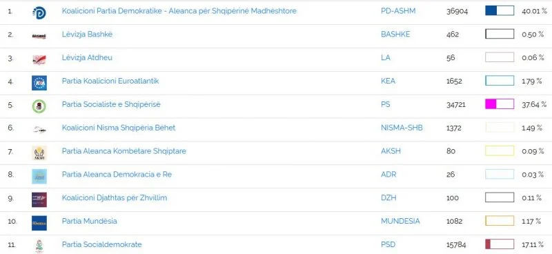 Ky është rezultati i 403 nga 405 qv e Qarkut pasi dy kuti të tjera, të fshatit Ktosh, në Malësi të Madhe, kishin probleme dhe janë dërguar për t’u numëruar në KQZ.