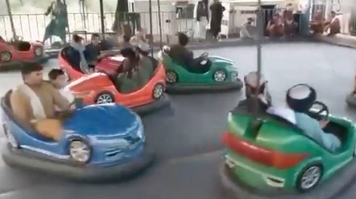 Me armë me vete, talebanët argëtohen pas fitores. Shijojnë xhirot me makina në parkun e lojërave (FOTO)