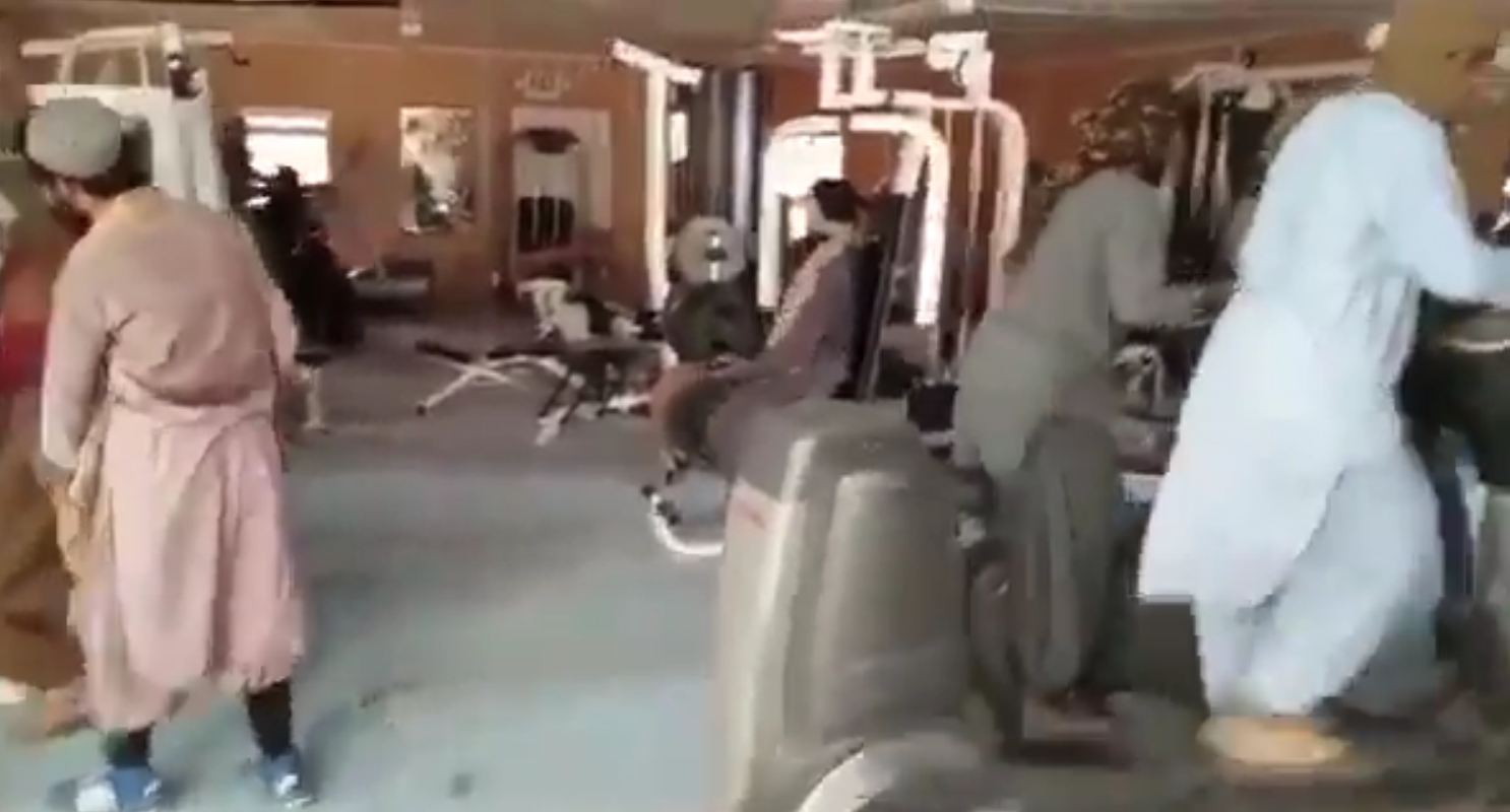 Në një tjetër pamje duket që shijojnë pajisjet e palestrës në pallatin presidencial të Kabulit pasi u mor nën kontroll nga trupat talebanë.