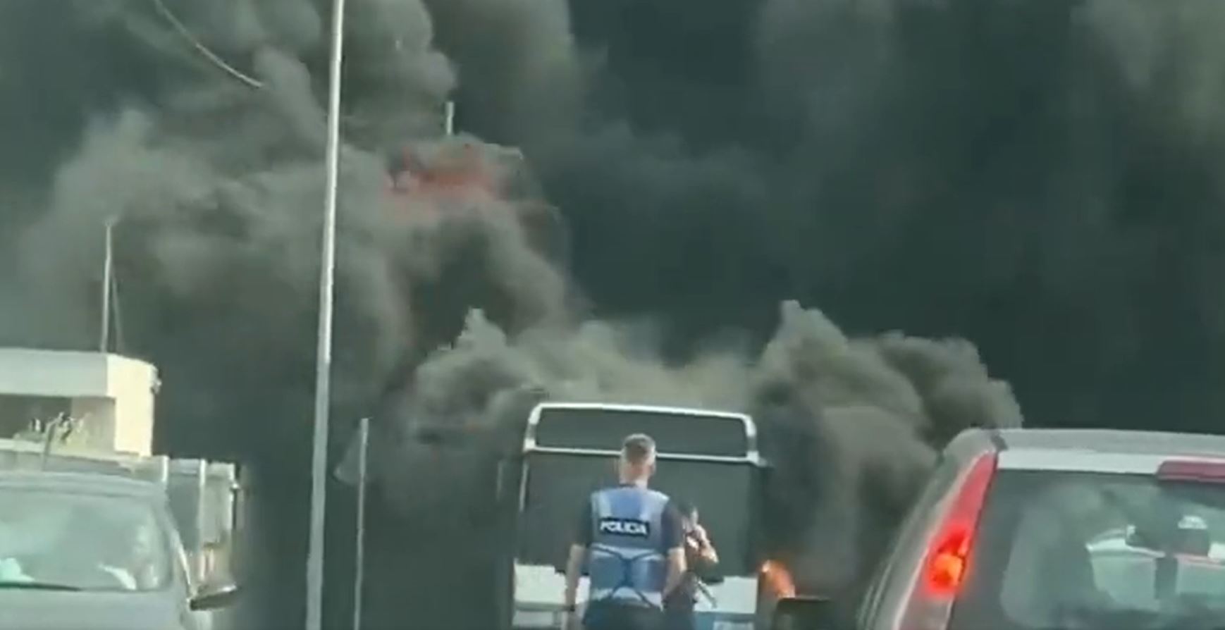 Merr flakë në ecje autobusi në Durrës, shkrumbohet tërësisht (VIDEO)
