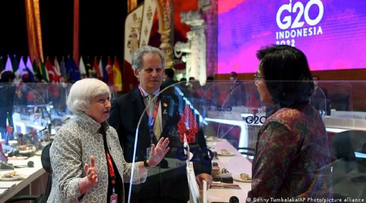 Agjenda dy-ditore e takimit të ministrave të financave të G20 në Bali të Indonezisë, është përqendruar tërësisht tek pasojat ekonomike të pushtimit rus në Ukrainë. Në takimin e prillit të G20-ës, sërish me tematikë kryesore financat, zyrtarët e SHBA-së, Mbretërisë së Bashkuar, Francës, Kanadasë dhe Ukrainës u larguan në shenjë proteste kundër pjesëmarrjes së të dërguarve rusë në samit.