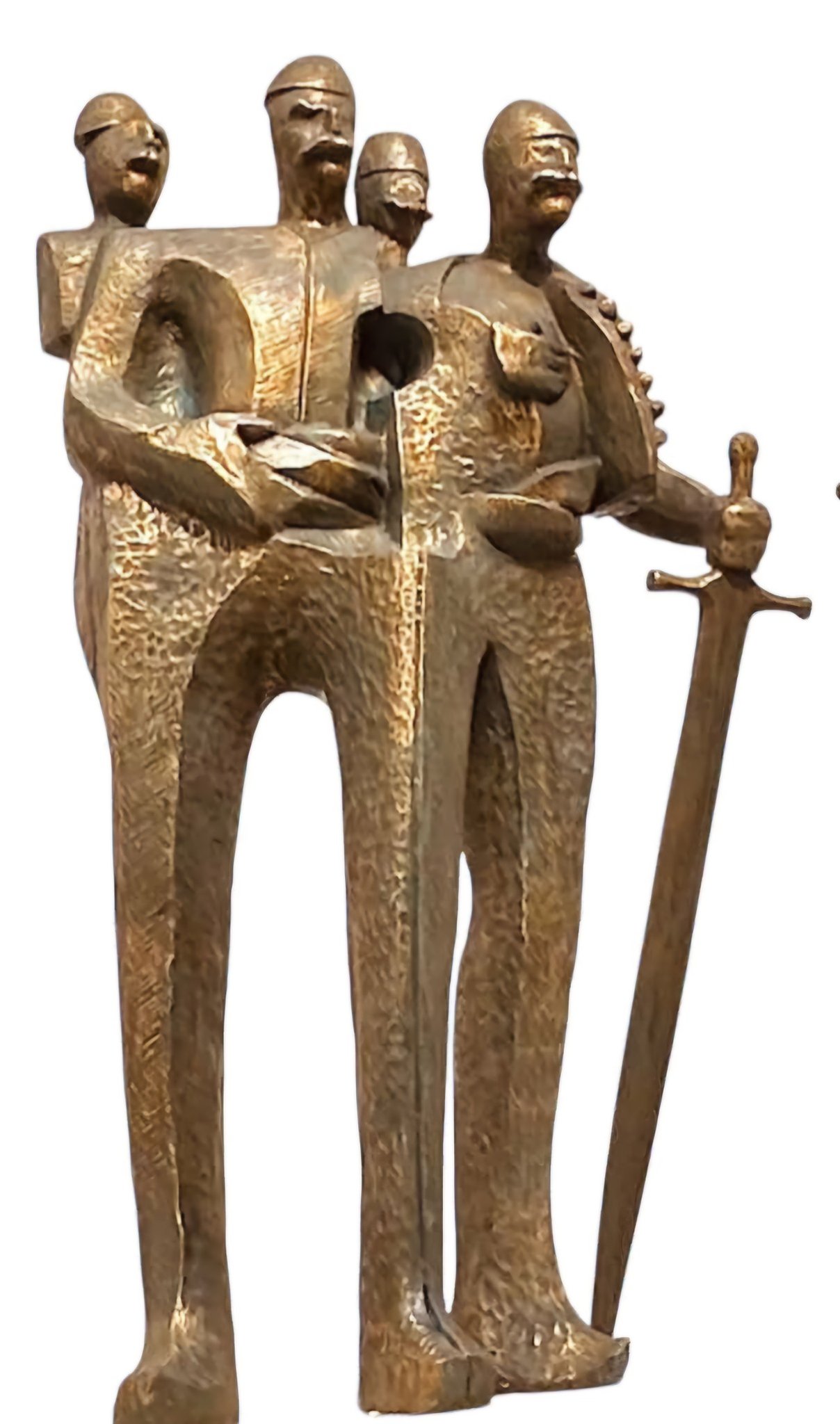 Përballë tij qëndrojnë burrat e Ulqinit, të tre të bashkuar në një trup kompozicional, si ndjeshmëri në qëndrim, që përfaqëson solidaritetin, besën dhe përkushtimin ndaj një qëllimi të përbashkët. Këta burra janë të armatosur jo vetëm me armë fizike, por edhe me vullnetin e hekurt të përkatësisë dhe ndërgjegjes kombëtare.
