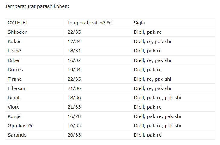 Vranësirat e dendura do të shoqërohen me reshje shiu me intensitet të ulët në një pjesë të madhe të vendit gjatë mesditës, kryesisht në relievet kodrinore-malore.