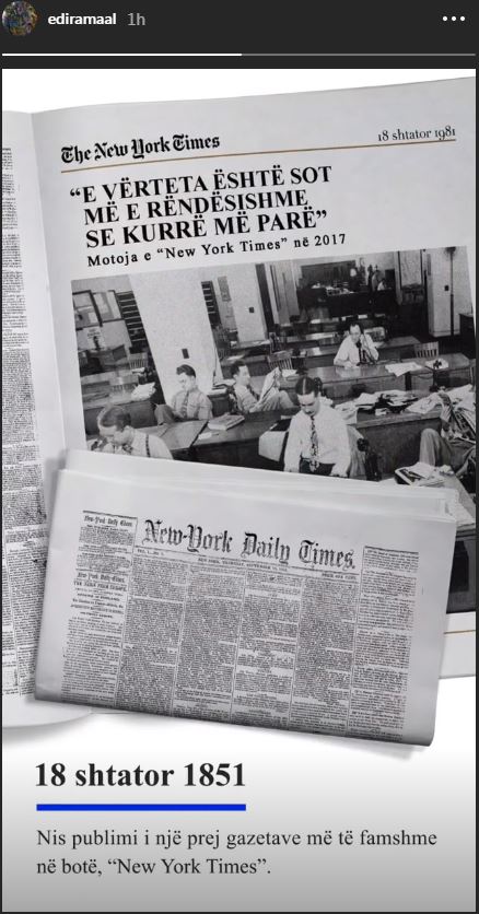 Kjo datë përkon me botimin e parë të gazetës prestigjoze amerikane “New York Times” dhe këtë Rama e ka publikuar në rrjetin e tij social për 167 vjetorin e saj.