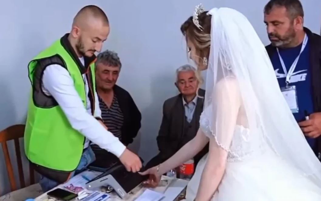 Në një moment të veçantë, nusja dhe dhëndri janë parë duke hyrë së bashku në një qendër votimi, duke ushtruar të drejtën e tyre të votës.