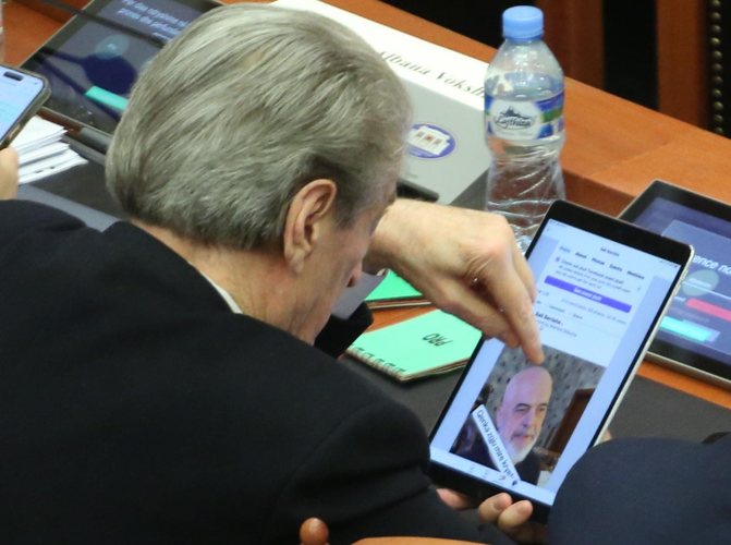 Në kulmin e debateve në Kuvend, Sali Berisha duket se ka gjetur kohë të merret edhe me rrjetet sociale. Objektivi i LSA e ka “kapur mat” kryetarin demokrat me iPad në dorë, teksa përgatit një postim të radhës në rrjetin social Facebook. Në fokusin e postimit të Berishës është kryeministri Edi Rama, për të cilin me ironi shkruan në videon e postuar: “Qenka zgju mirë kryetari sot”.