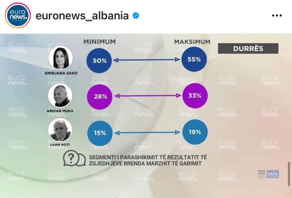 Ndërkohë “Euronews Albania” ka transmetuar saktësisht sondazhet e tij për zgjedhjet e 6 marsit, të pjesshme vendore.
