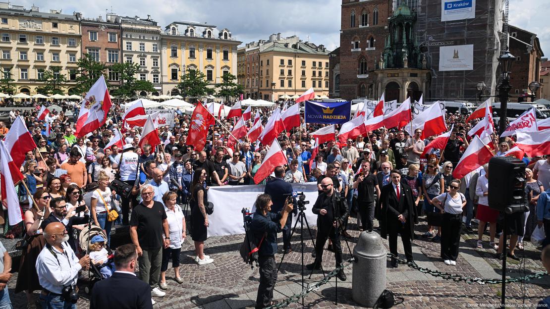 Në të gjithë vendin, njerëzit dolën në rrugë për të demonstruar kundër imigracionit, përfshirë këtu në KrakovFotografi: Omar Marques/Anadolu/picture alliance