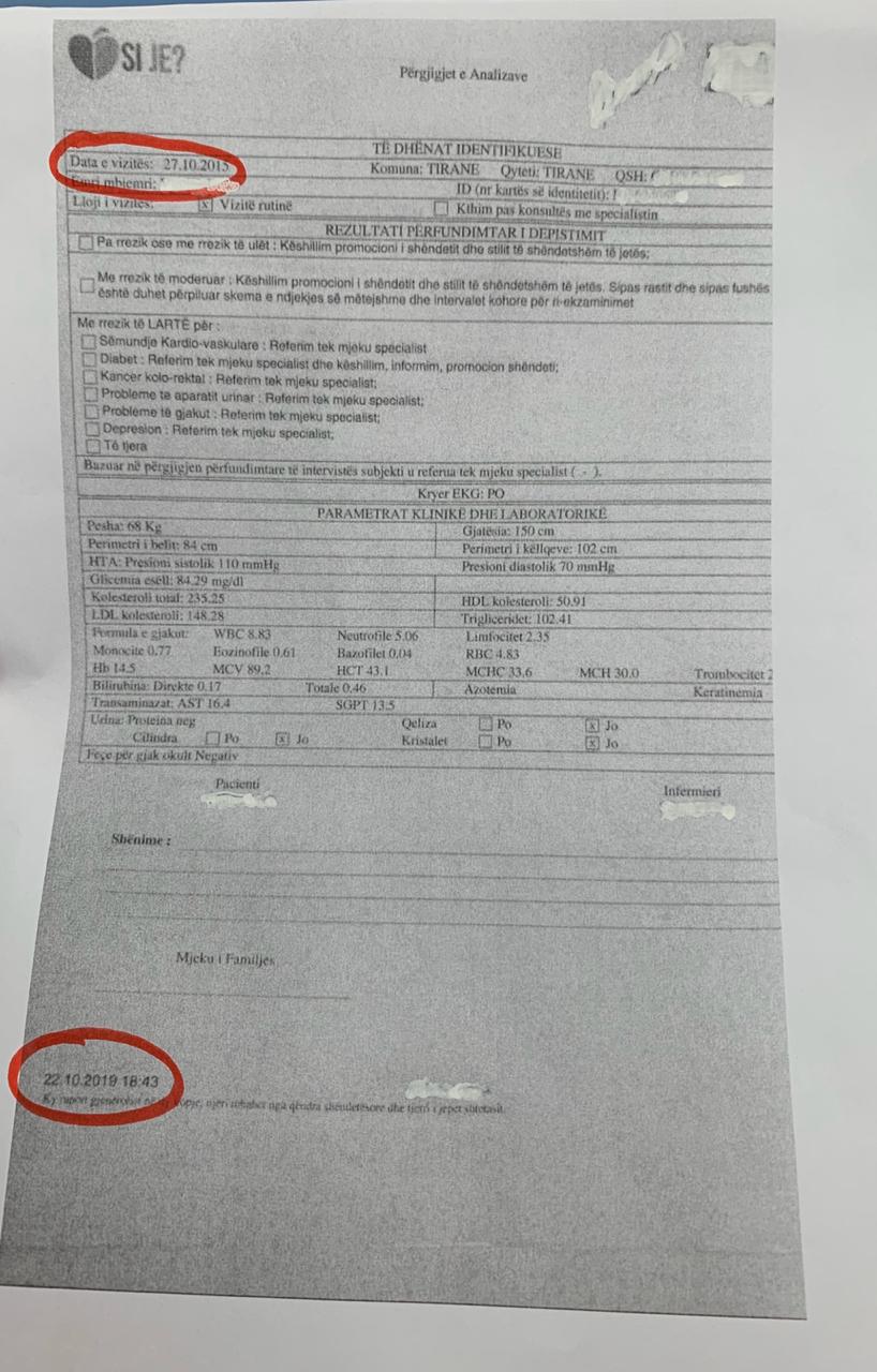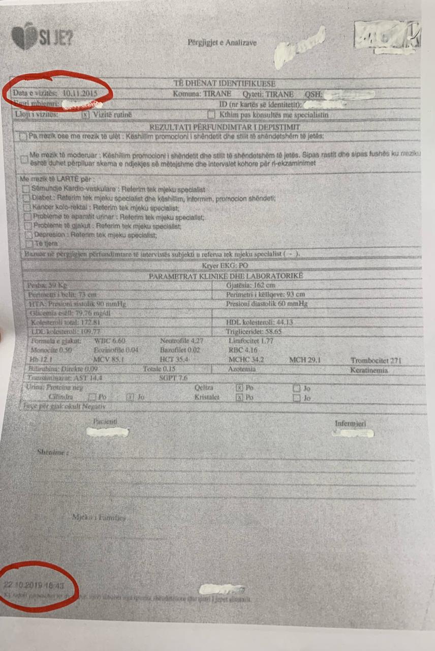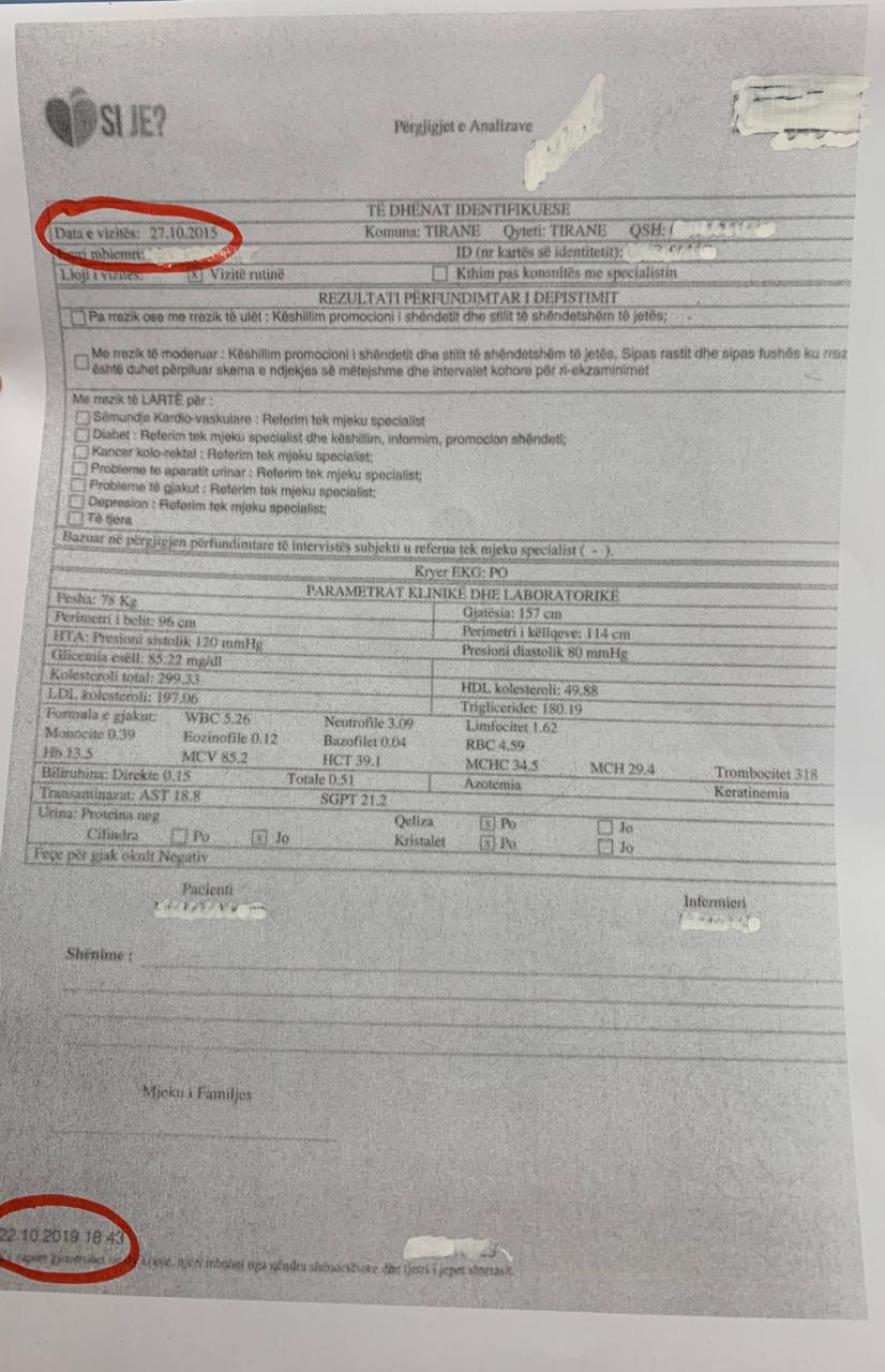 Këto të dhëna faktojnë se në Qendrat Shëndetësore janë shpërndarë me mijëra formularë të vitit 2015, të cilët duhen mbushur sipas informacioneve që po çon koncesionari këto muajt e fundit. Partia Demokratike disponon, gjithashtu, fakte se përfundimi i analizave që bëhen nga koncesioni korruptiv i Edi Ramës është i ndryshëm nga të njëjtat analiza të kryera në privat apo në shtet. Partia Demokratike u bën thirrje të gjithë mjekëve të qendrave shëndetësore të mos plotësojnë asnjë formular të analizave të checkup-it për vitet e shkuara, të mos bëhen pjesë e manipulimit, pasi ky koncesion korruptiv do të shkojë para drejtësisë.