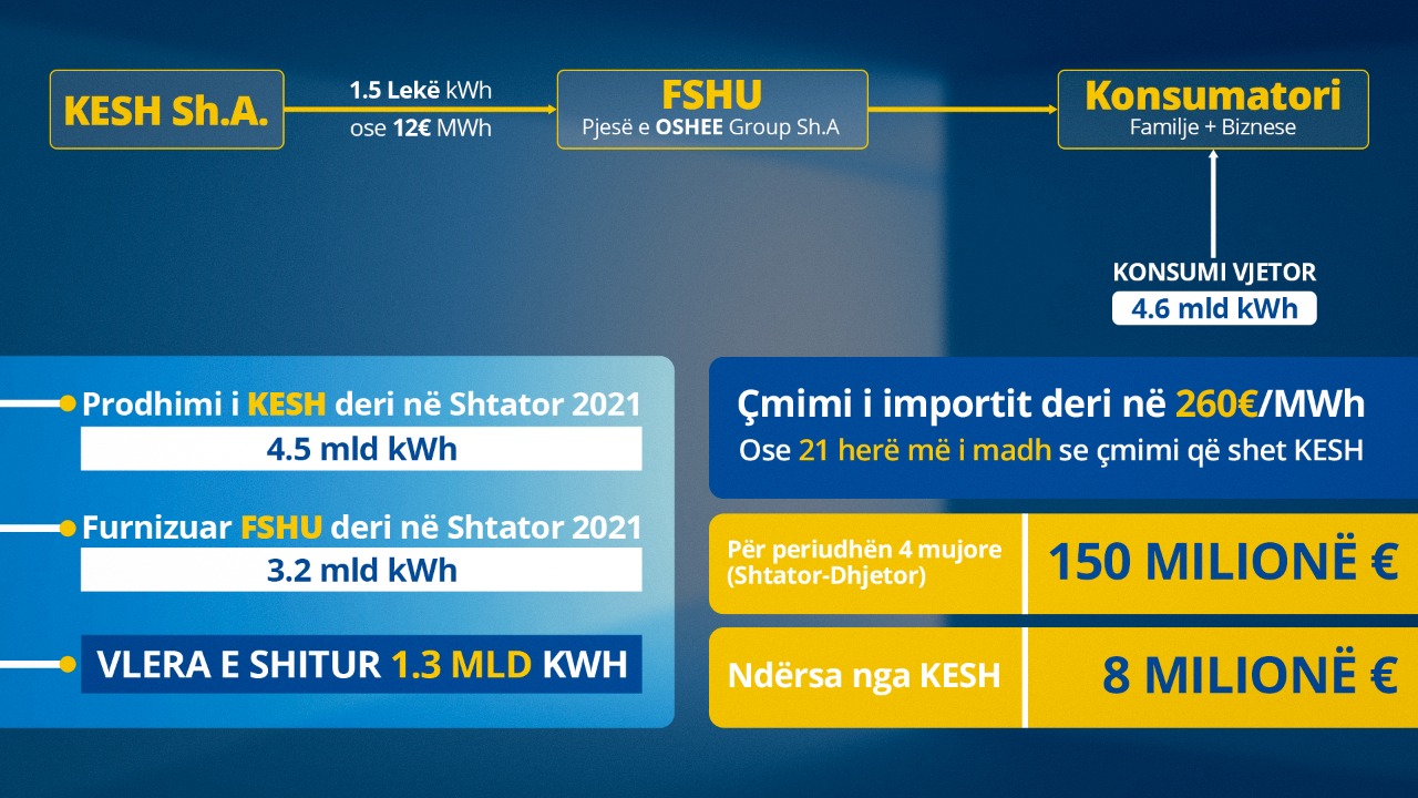 Me çmimin e KESH, (për 4 muajt e ardhshëm Shtator-Dhjetor) nga Buxheti i Shtetit do shpenzoheshin 8 Mln €; Ndërsa me skemën e vjedhjes (nëpërmjet energjisë së importuar) nga Buxheti i Shtetit do harxhohen 150 Mln €.