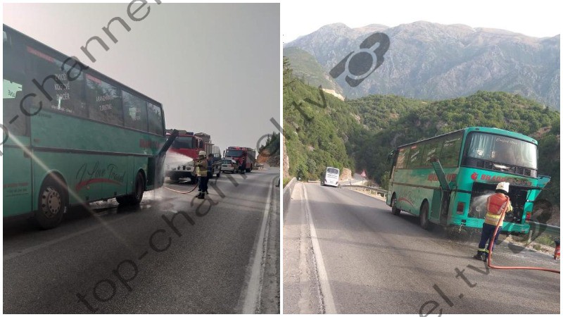 Një autobus është përfshirë nga flakët në aksin rrugor Himarë-Sarandë. Policia raporton se ka vetëm dëme materiale dhe zjarri ka ardhur si pasojë e një defekti teknik.