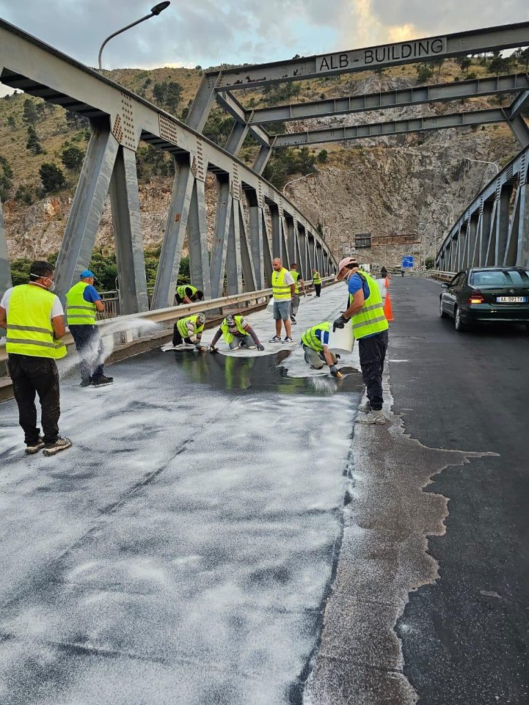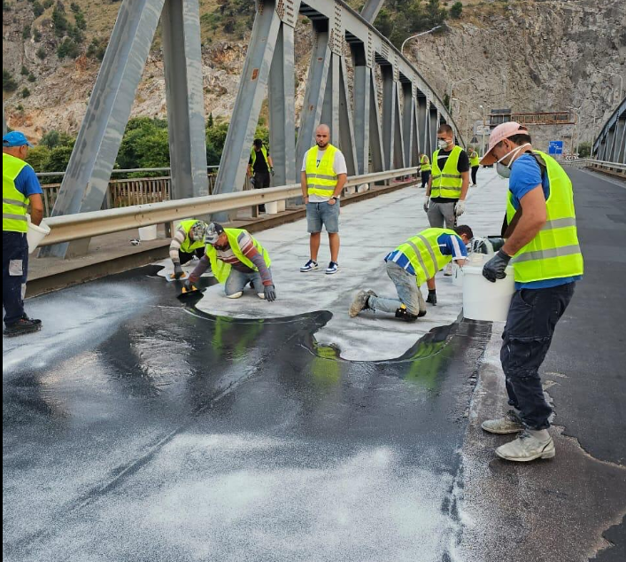 Në urën e Bunës vijon puna për riparimin e shtresës së rezinës. Për të mos penguar trafikun, punimet kryhen gjatë natës dhe në orët e para të mëngjesit, në korsi të veçuara.
