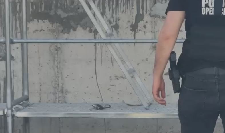 Arma e zjarrit u gjet e hedhur në një pellg me ujë, pranë një pallati në ndërtim. Autor i ngjarjes dyshohet se është shtetasi K. Kamberi, ndërsa policia është vënë në ndjekje të tij.