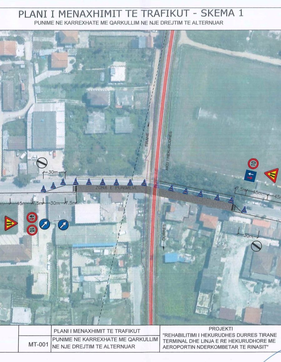 Policia Bashkiake Durrës ka njoftuar të gjithë drejtuesit e automjeteve të “njësive administrative Sukth, Manëz, Ishëm, të cilët përdorin segmentin rrugor Sukth-Kullë dhe anasjelltas Kullë-Sukth në kilometrazhin 10+418 se më datë 28.08.2025 deri më 29.08.2025 nga ora 00:00 deri në 04:00, në kuadër të rikonstruksionit të linjës hekurudhore Durrës-Tiranë Terminali Publik i Transportit (TPT) si dhe ndërtimit të linjës së re hekurudhore drejt Aeroportit Ndërkombëtar të Rinasit (ANR), do të kryhen punime që do të ndikojnë në qarkullimin rrugor në kalimin hekurudhor Fusha Sportive, Sukth”.