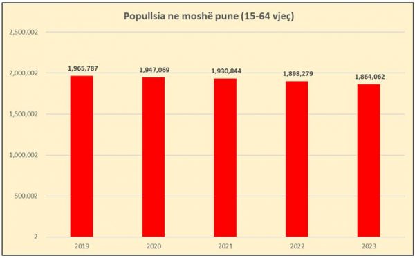 Popullsia në moshë punë u reduktua me rreth 101 mijë persona në krahasim me vitin 2019, para pandemisë. Aktualisht popullsia në moshë pune është 1,864,062 persona nga 1,974,207 në vitin 2019, ose 101 mijë më pak.