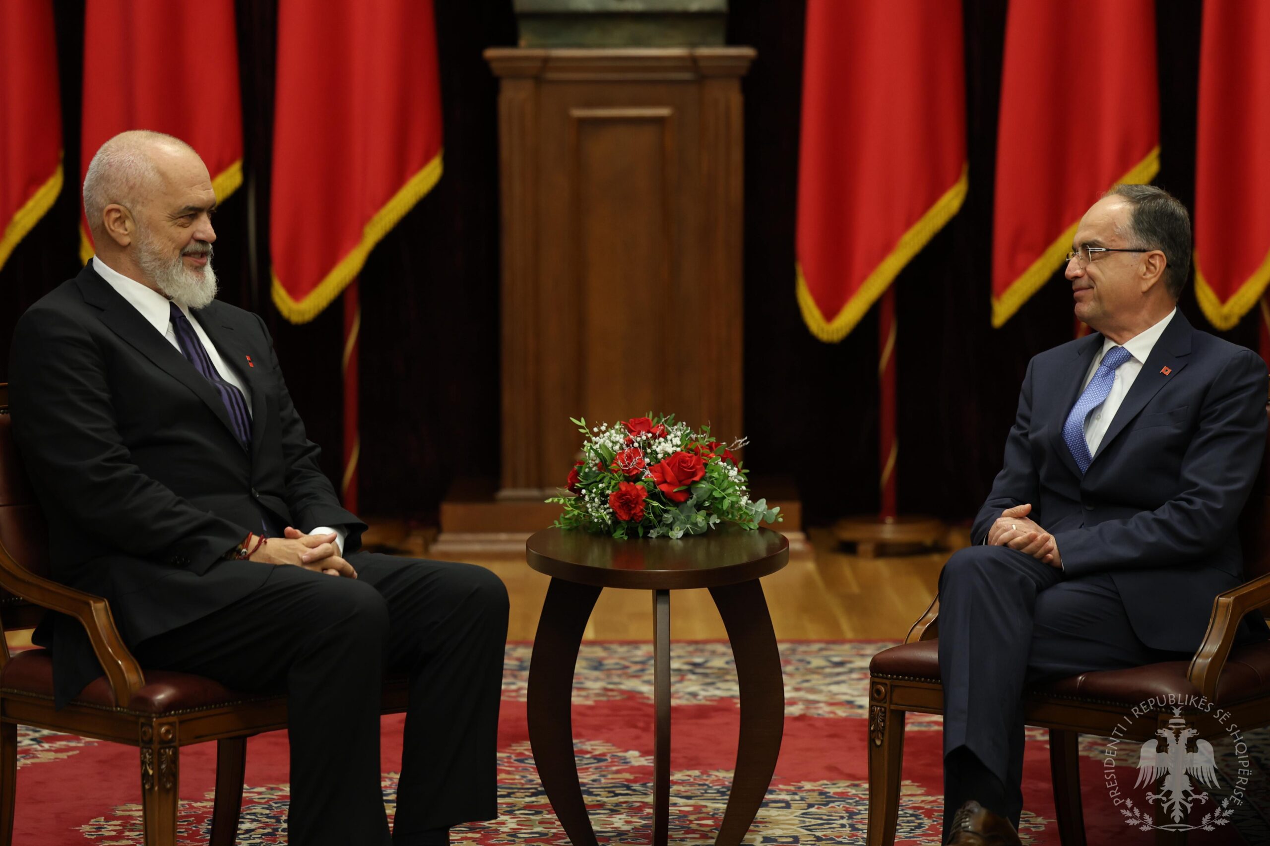 Edi Rama ishte në presidencë ku takoi kreun e Shtetit. Një shtrëngim duarsh në derën e Presidencës e më tej një rrahje shpatullash. Rama dhe Begaj u takuan kokë më kokë në sallën e pritjeve, takim që zgjati rreth 1 orë e 20 minuta.