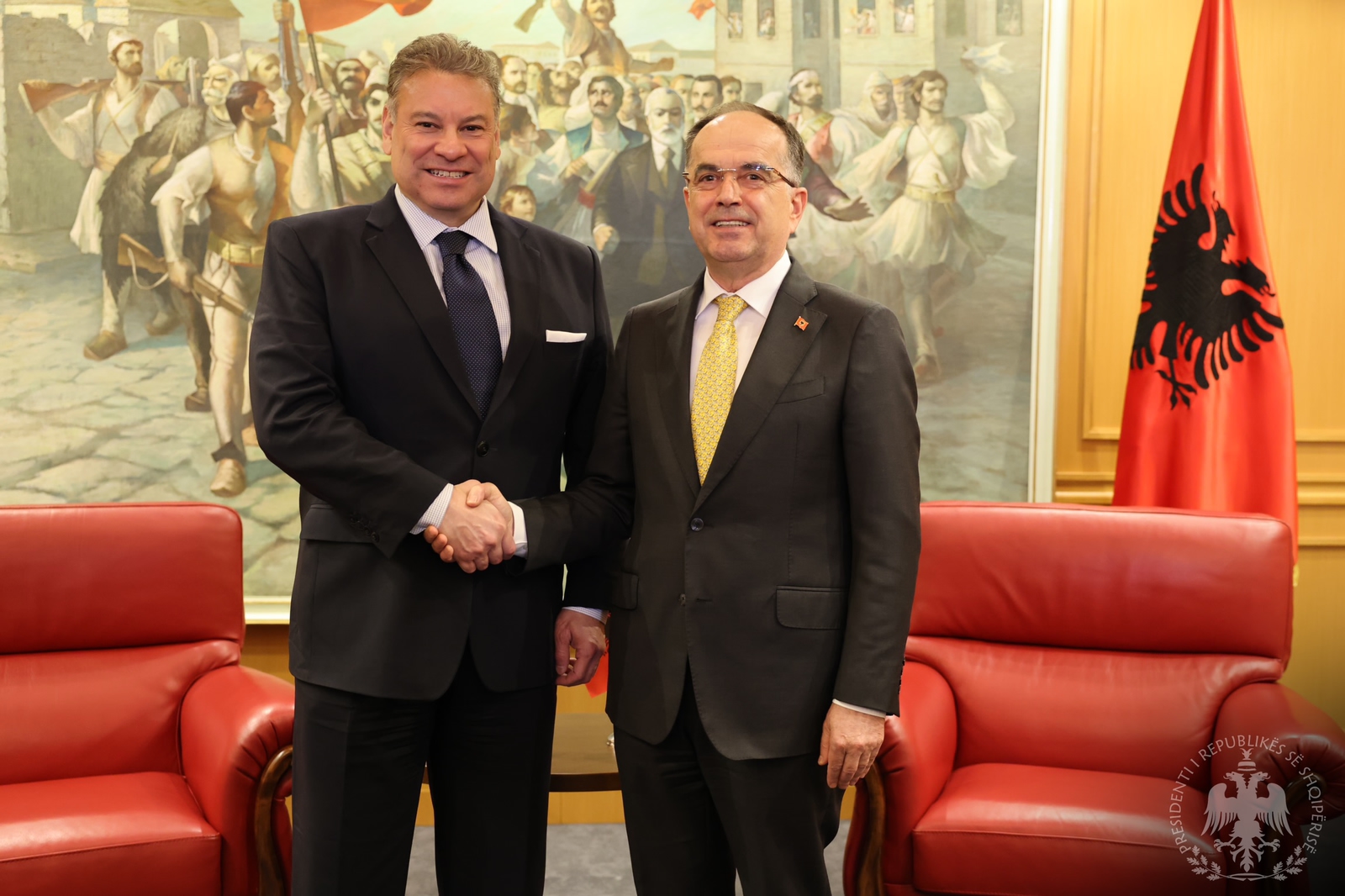 Përfundoi edhe takimi i Presidentit Bajram Begaj me Zv/Ndihmës Sekretarin amerikan të Shtetit, Gabriel Escobar. Zhvillimet në Ballkanin Perëndimor, mësohet se kanë qenë në qendër të takimit.