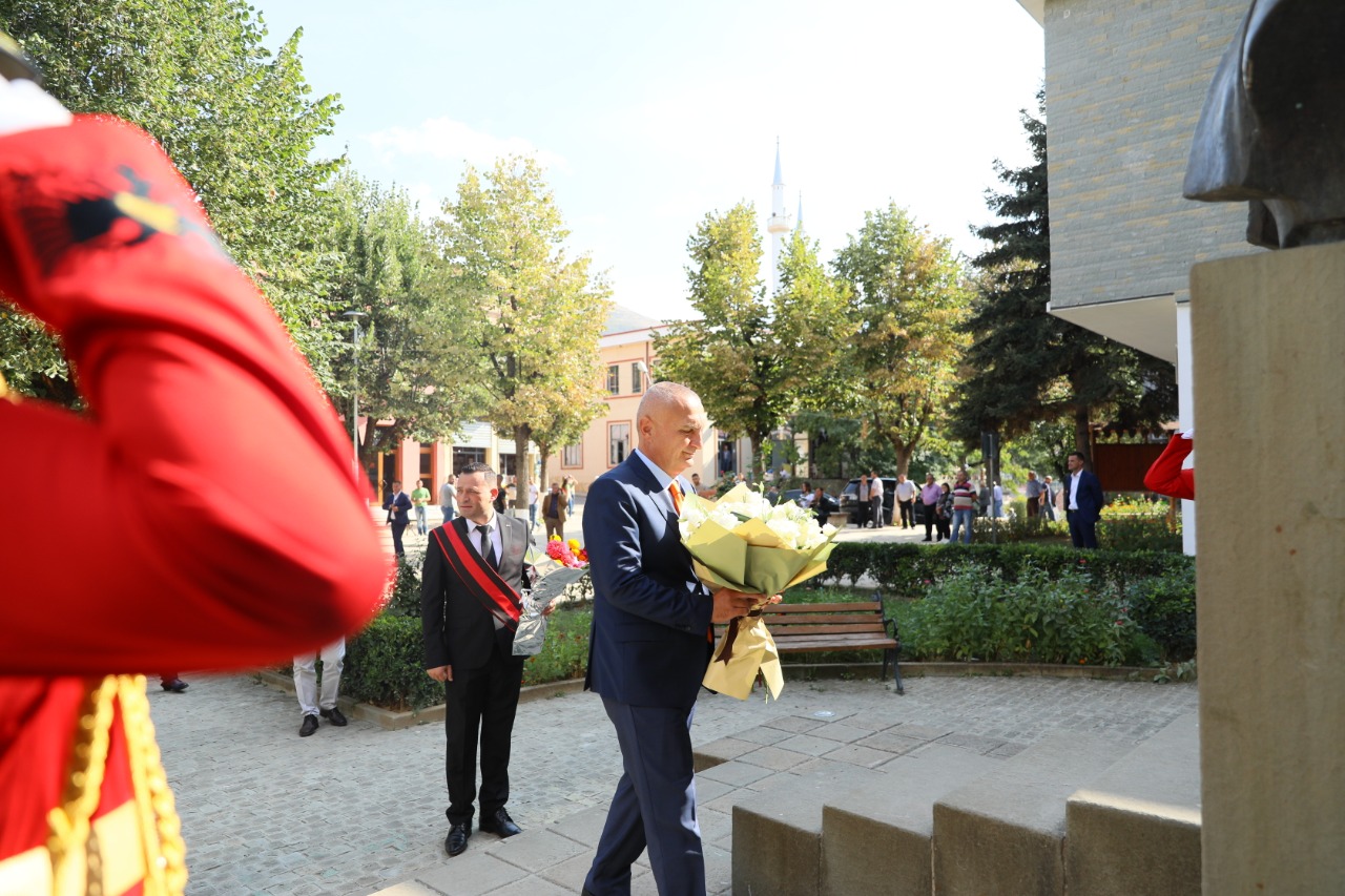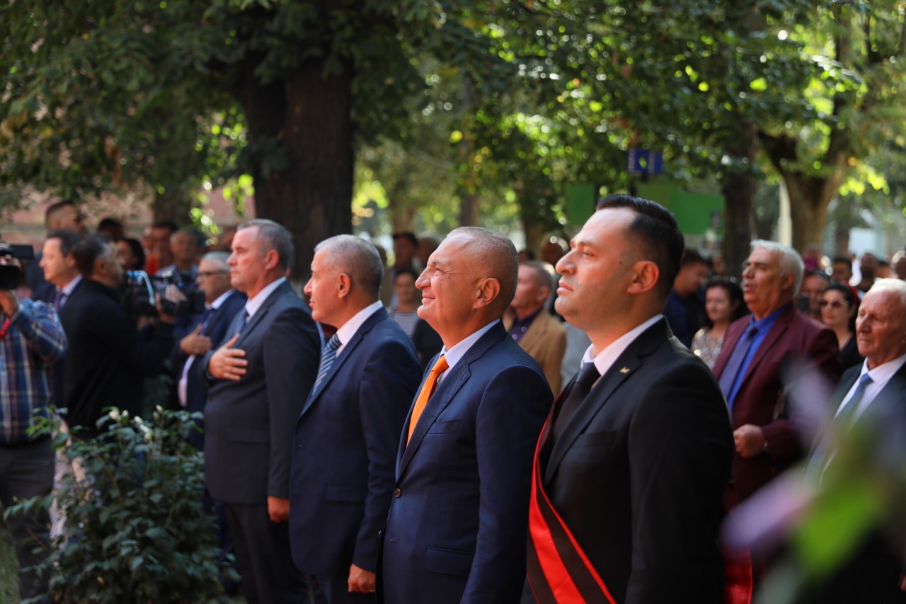 Më pas, Presidenti Meta i shoqëruar nga Kryetari i Bashkisë, Dionis Imeraj, autoritetet vendore, përfaqësues të të gjitha forcave politike, si dhe qindra qytetarë të Peshkopisë të cilit kishin dalë për ta mikpritur, vendosi një buqetë me lule në bustin e Elez Isuf Ndreut dhe u përul me respekt e mirënjohje para veprës dhe jetës së tij.