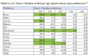 Pas Beratit, Tirana, Fieri dhe Elbasani kishin numrin më të madh të fëmijëve me prindër emigrantë. Në të kundërt Shkodra, Lezha, Gjirokastra dhe Durrësi, kanë shifra të ulëta të fëmijë me prindër emigrantë.
