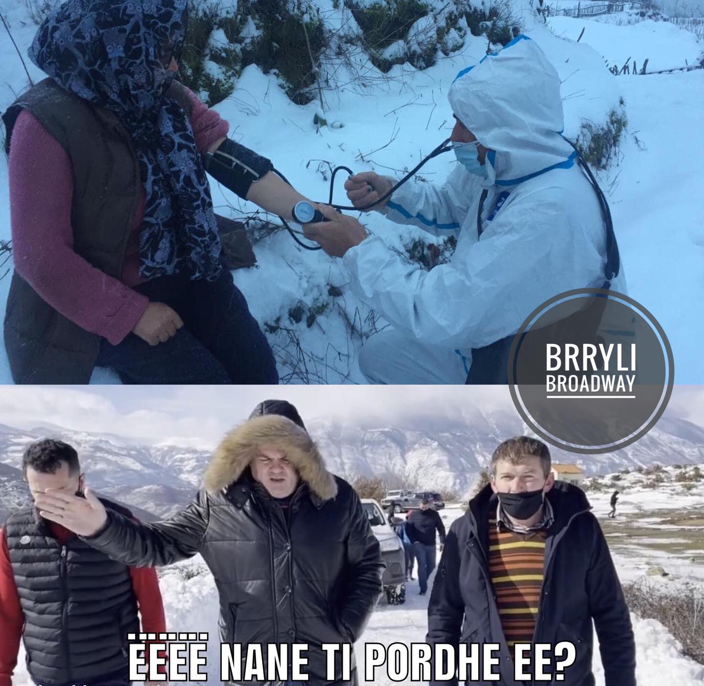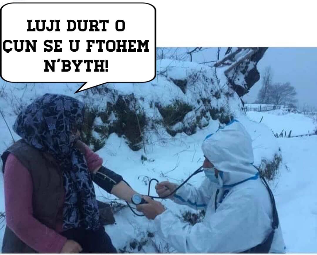 Në njëp kohë kur qytetarët ankoheshin se ishin bllokuar në rrugë nga ngricat apo në zona të ndryshme si pasojë e dëborës, ministrja e Shëndetësisë Ogerta Manastirliu publikoi një foto, sipas së cilës një mjek po i maste tensionin në dëborë një zonje.