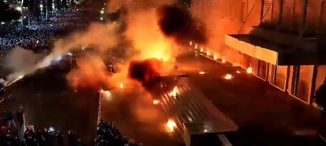 Ndërkohë protestuesit pas kësaj ndodhen para selisë së parlamentit ku zhvillohen seancat parlamentare.