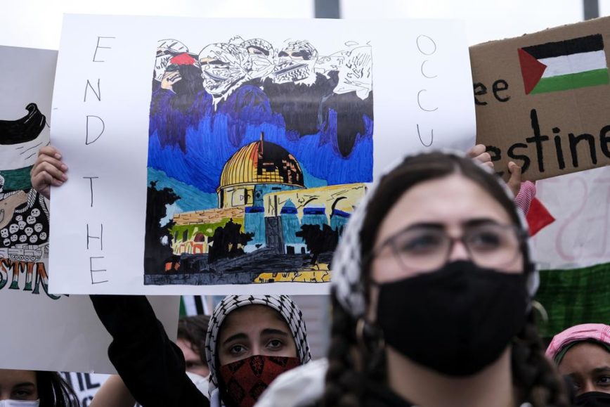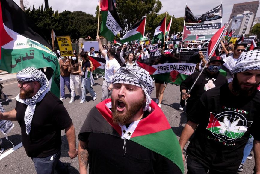 Në Los Anxhelos të shtunën, protestuesit duke mbajtur parrulla me mbishkrimin “Palestina e Lirë” bllokuan trafikun në një rrugë kryesore, ndërsa në Nju Jork, turma të mëdha marshuan nëpër Brooklyn, duke brohoritur “Palestina e Lirë” dhe “Nga lumi në det, Palestina do të jetë e lirë”.