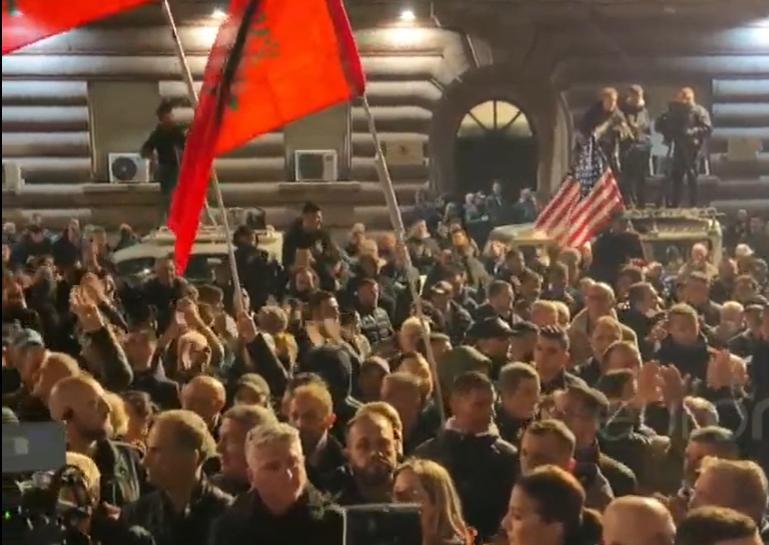 Ndërkohë sonte nuk ka flamuj të PD por vetëm flamuj kombëtar, amerikanë dhe te BE.