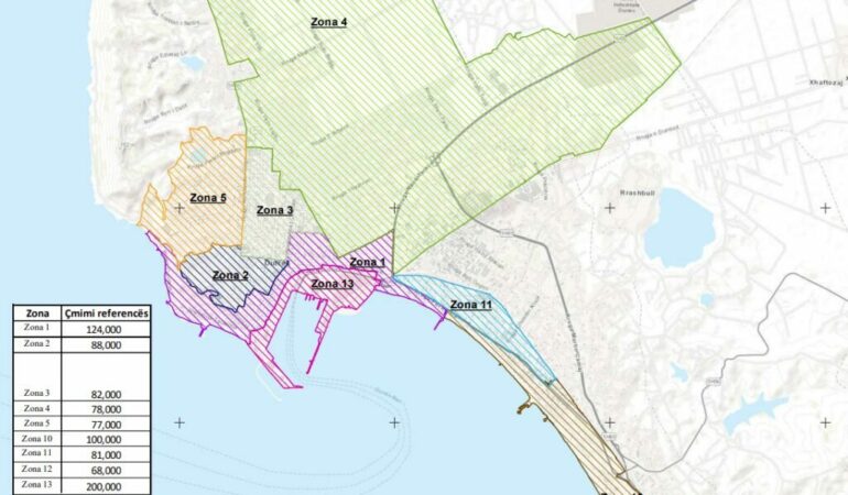 Zona nr.2 përfshin “Loro Boriçin” çmimi 65,000 lekë/m2