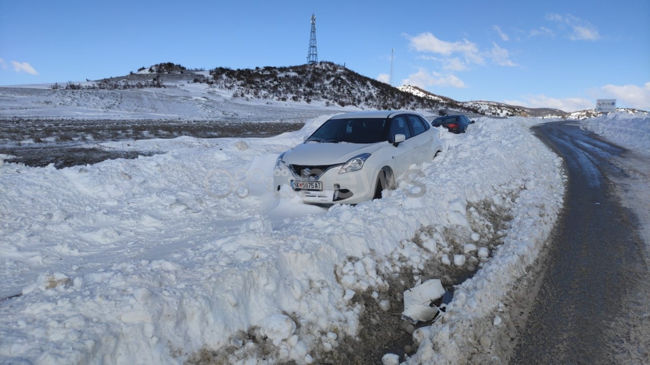Siç edhe mund të shikoni makina të shtrenjta u lanë në rrugë të madhe pa u menduar dy herë në pritje të hapjes së rrugës që u bë e mundur vetëm gjatë ditës së sotme, 15 shkurt, falë ndërhyrjes së borëpastrueseve.