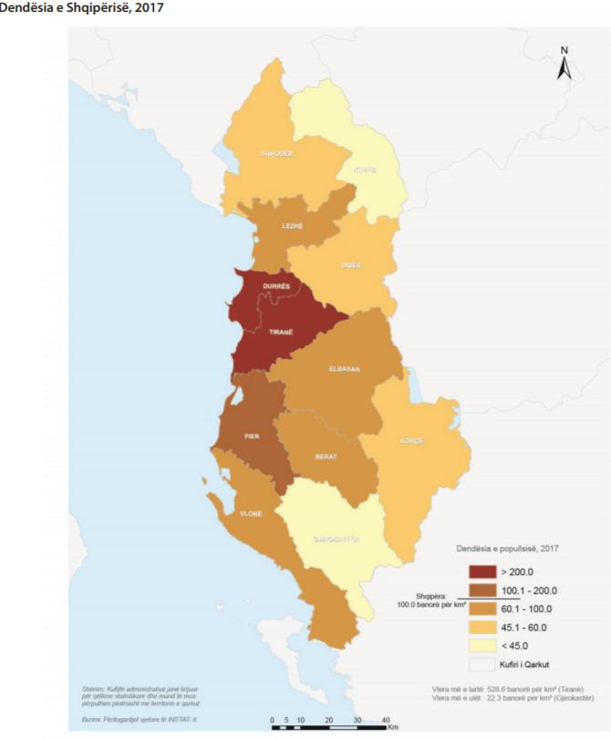 Sipas të dhënave të INSTAT ne publikimin për statistikat e rajoneve 2017, qarqet si Tirana, Durrësi dhe Vlora gjatë vitit 2017 kanë pësuar rritje të numrit të tyre të popullsisë, ndërkohë që qarqet e tjera vazhdojnë të kenë një rritje negative.