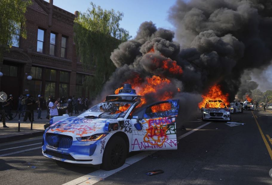 Në disa pjesë të autostradës 101 të Los Angelesit protestuesit bllokuan kolonën policore duke e qëlluar me gurë, si pasojë e të cilave u shkatërruan disa automjete policore, dhe u regjistruan edhe raste dëmtimesh te policët.