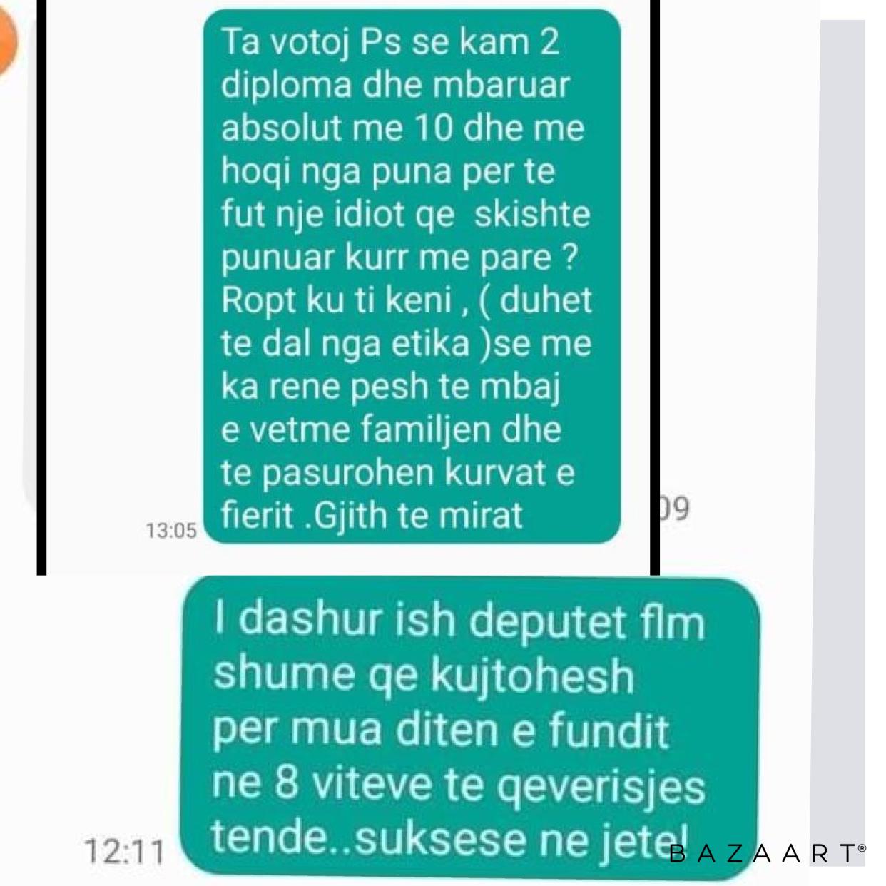 “Kam 2 diploma dhe mbaruar absolute me 10 dhe më hoqi nga puna për të fut një idiot që skishte punaur kurrë më parë, ropt ku ti keni, (duhet të dal nga etika) se me ka rënë pesh tëe mbaj e vetme familjen dhe tëpasurohen kurvat e fierit. Gjoth të mirat”, i përgjigjet mesazhit të qytetarja nga Fieri.