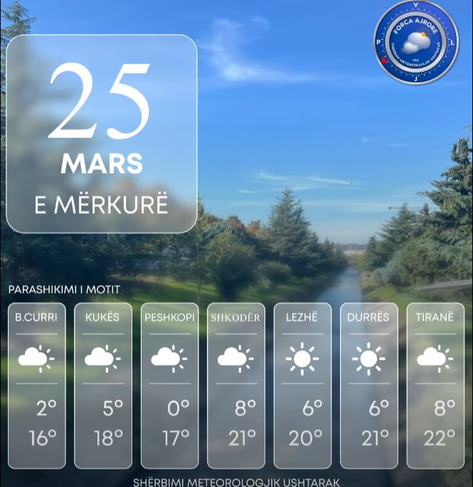 Sipas Shërbimit Meteorologjik Ushtarak moti parashikohet me alternime kthjellimesh dhe vranësira të cilat priten të jenë më të përqendruara përgjatë relieveve malore të vendit.