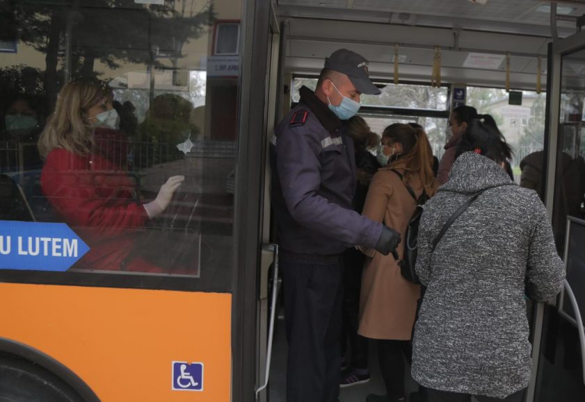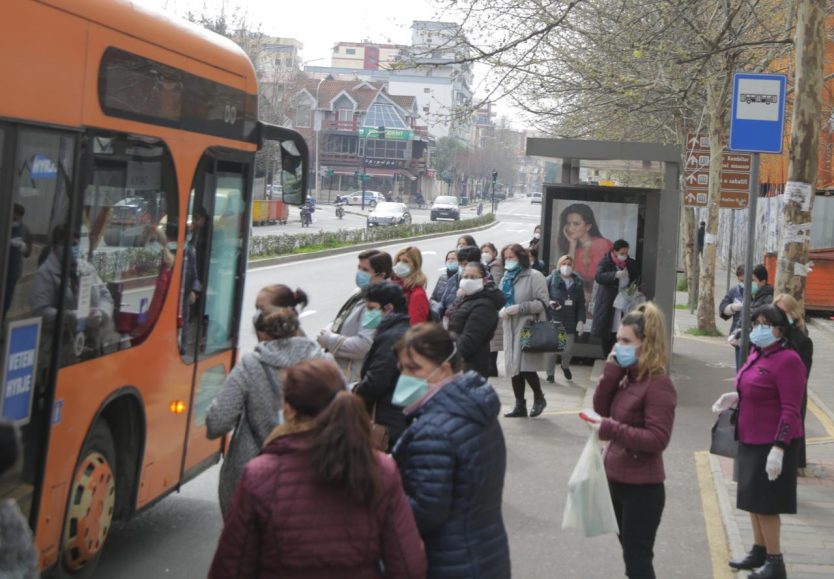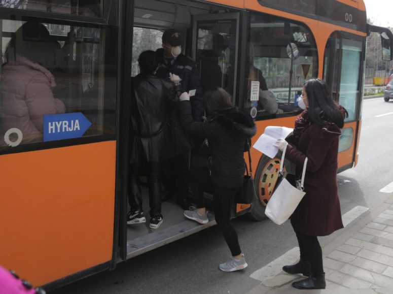 Autobusët urbanë në Tiranë, është njoftuar se do t’i përdorim vetëm personeli mjekësor i cili duhet të shkojë çdo ditë në punë, fotot e realizuara nga Agjencia LSA këtë të mërkurë tregojnë mbipopullim të tyre. Dhjetëra persona, përgjithësisht me maska dhe doreza, duke mbajtur edhe autorizimet e lëvizjes në duar, shihen në foto teksa hipin në autobus, duke qëndruar shumë pranë njëri-tjetrit.