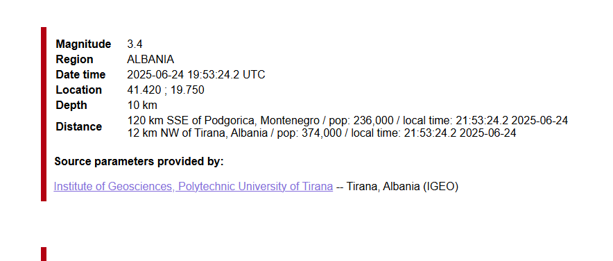 Sërish lëkundje tërmeti në vend, ja ku është epiqendra